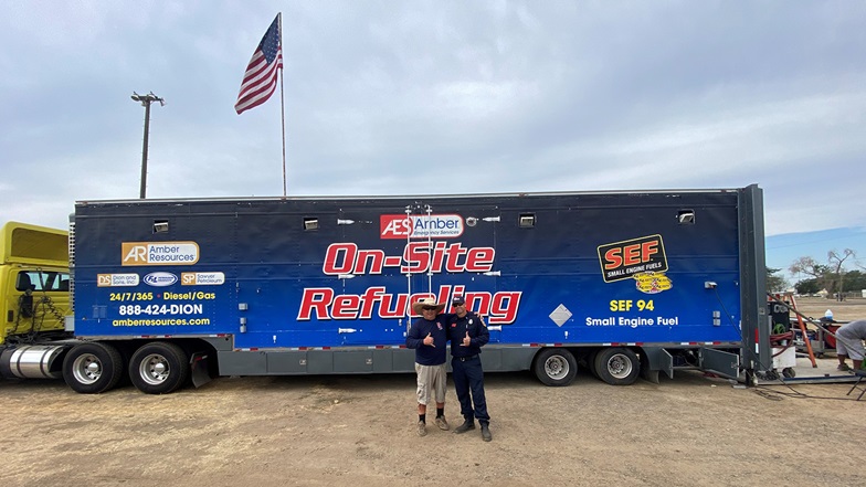 “We’ve got specialized box trailers that we’ve converted into what we call ‘base camp refuel,’” Thompson said. “These trailers are fitted with multiple tanks inside and external meters and pumps that sit outside. We set the trailers up, put containment mats down in front and then we have meters that can come out alongside, just like a gas station.”